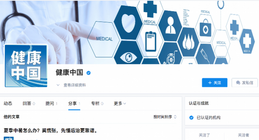 China's top health authority has opened an account on Zhihu, a popular Question And Answer website, to share healthcare information and policy details with a wide audience.
